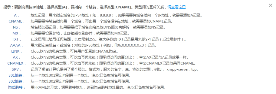 以往我都是手动添加的,反正一般就是做个A记录之类的,记录也不多,手动输入可能还快一点,看到这个想试试,到DNSPod后台看了一下,发现找不到导出的地方,算了~这里支持多种记录类型。