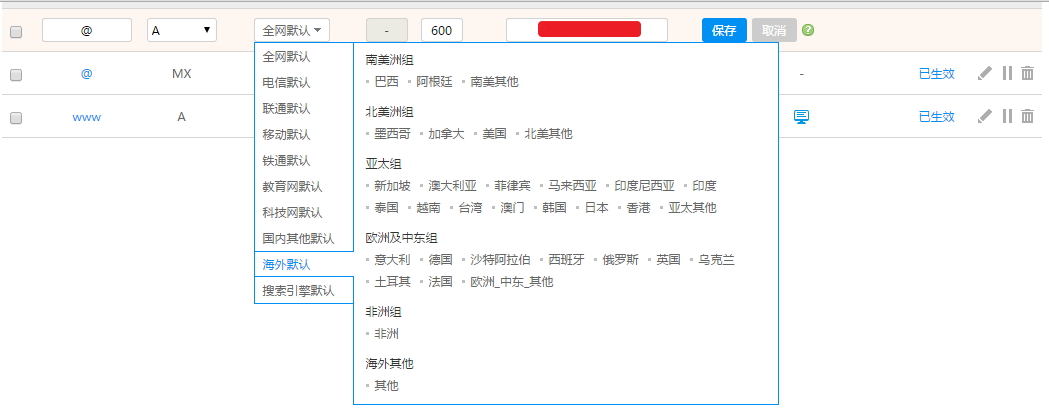 DNSPod那里自定义线路需要企业套餐,而这里是可以自定义线路的(如下图),根据需要自行选择: