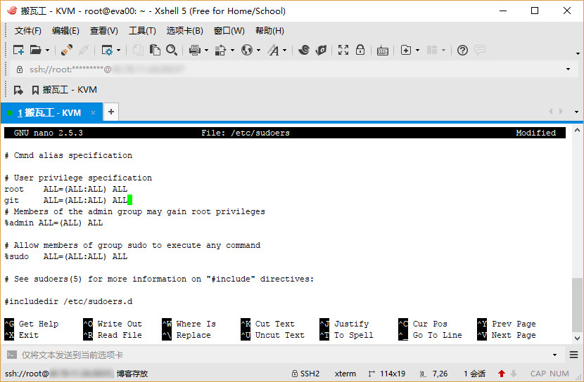 在如下图位置添加 git ALL=(ALL:ALL) ALL: