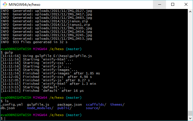 今天休息没事,想着再优化下,查看页面源码发现代码未压缩,于是到 Hexo 插件库看了下,找到个 hexo-all-minifier ,但是我安装下来一直报错,搜索过程中找到基于 gulp 的几个压缩插件,马上试试。